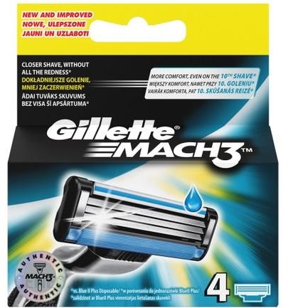 PropertiesMaszynki do golenia dla mężczyzn Gillette o ostrzach twardszych niż stal dłużej zachowują ostrość (w porównaniu z Sensor3)Każde ostrze wymienne opracowano tak, aby można go użyć 15 razy komfortowo się golącWkłady wymienne posiadają bardziej precyzyjne ostrza (2 pierwsze ostrza w porównaniu z Sensor3)Pasek nawilżający ułatwia poślizg maszynki, chroniąc skórę przed podrażnieniamiUlepszona osłona Skin Guard pomaga lekko naciągnąć skórę i przygotowuje zarost do goleniaMoże być używana z dowolnymi rączkami maszynek Mach3Storage and useRodzaj przechowywaniaTypPrzechowywać w temperaturze otoczeniaDetailed DataIdentyfikacjaFPC Code – 81642483 . . .