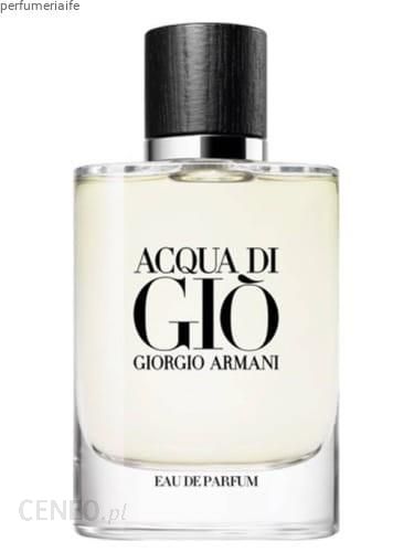 GIORGIO ARMANI ACQUA DI GIO Specyfikacja: nowy i nieużywany flakon; przedmiotowi może brakować oryginalnego opakowania lub jest w opakowaniu zastępczym Pojemność: 75 ml Rodzaj: woda perfumowana NUTY ZAPACHOWE (AROMATYCZNO-WODNE) GŁOWA: nuty morskie i zielona mandarynka; SERCE: szałwia muszkatołowa, lawenda i geranium; BAZA: woda mineralna, wetyweria i paczula.