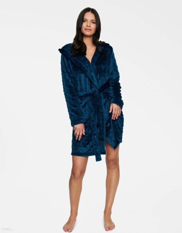 Pluszowy szlafrok z wytłoczonym motywem serc. Proste, długie rękawy oraz wygodna długość zapewnią komfort i ciepło podczas chłodniejszych pór roku. Dołączony do szlafroka pasek pozwala regulować jego szerokość oraz fason. Dwie duże kiszenie po bokach sprawiają, że szlafrok sprawdzi się w każdych okolicznościach.Skład materiału: 100% Poliester