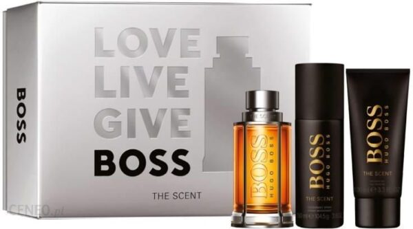 Komplet zawiera:woda toaletowa 100 ml,perfumowany żel pod prysznic 100 ml,perfumowany dezodorant w spray 150 ml.Nowy, uwodzicielski zapach dla mężczyzn. Hugo Boss znalazł perfekcyjne połączenie pomiędzy pewnością siebie i nonszalancją – mieszanką cech, która naprawdę pociąga kobiety. Boss The Scent uwodzi kobiety niespiesznie, z pasją i w wysublimowany sposób. Takie uwodzenie angażuje wszystkie zmysły.Kompozycję perfum otwiera nuta imbiru. Serce zapachu zbudowano na nucie owocu maninka, afrykańskiego afrodyzjaku o aromacie marakui i rumu. Magnetyzująco męska nuta skóry u podstawy perfum utrwala zapach i nie pozwala o nim zapomnieć.Linia głowy: imbirLinia serca: lawenda, maninkaLinia podstawy: skóraPremiera: 2015 r.