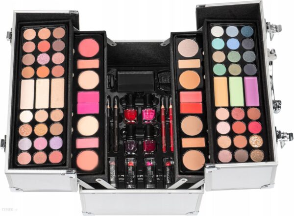 Zestaw z kosmetykami w eleganckim unikatowym kuferkuKuferek zapakowany w tekturowe eleganckie pudełko.PIĘKNY ZESTAW SKŁADAJĄCY SIĘ Z 91 ELEMENTÓW!!!Świetny pomysł na prezent!UWAGA!!! DWA KOLORY DO WYBORU. RÓŻOWY I SREBRNY. PO ZAKUPIE NAPISZ, KTÓRY KOLOR WYBIERASZ. INACZEJ WYBIERAMY KOLOR LOSOWO!!!!W skład zestawu wchodzą następujące elementy:* 48 x cień do powiek* 6 x pudrowe cienie do powiek* 6 x korektor* 4 x błyszczyk do ust* 6 x róż* 4 x lakier do paznokci* 4 x pomadka do ust* 2 x konturówka do ust* 2 x kredka do oczu* 4 x dwustronny aplikator do cieni* 1 x pędzel do różu* 2 x pędzelek do ust* 1 x lusterko* 1 x temperówkaKOLOR NR 1 – SREBRNYKOLOR NR 2 – RÓŻOWY