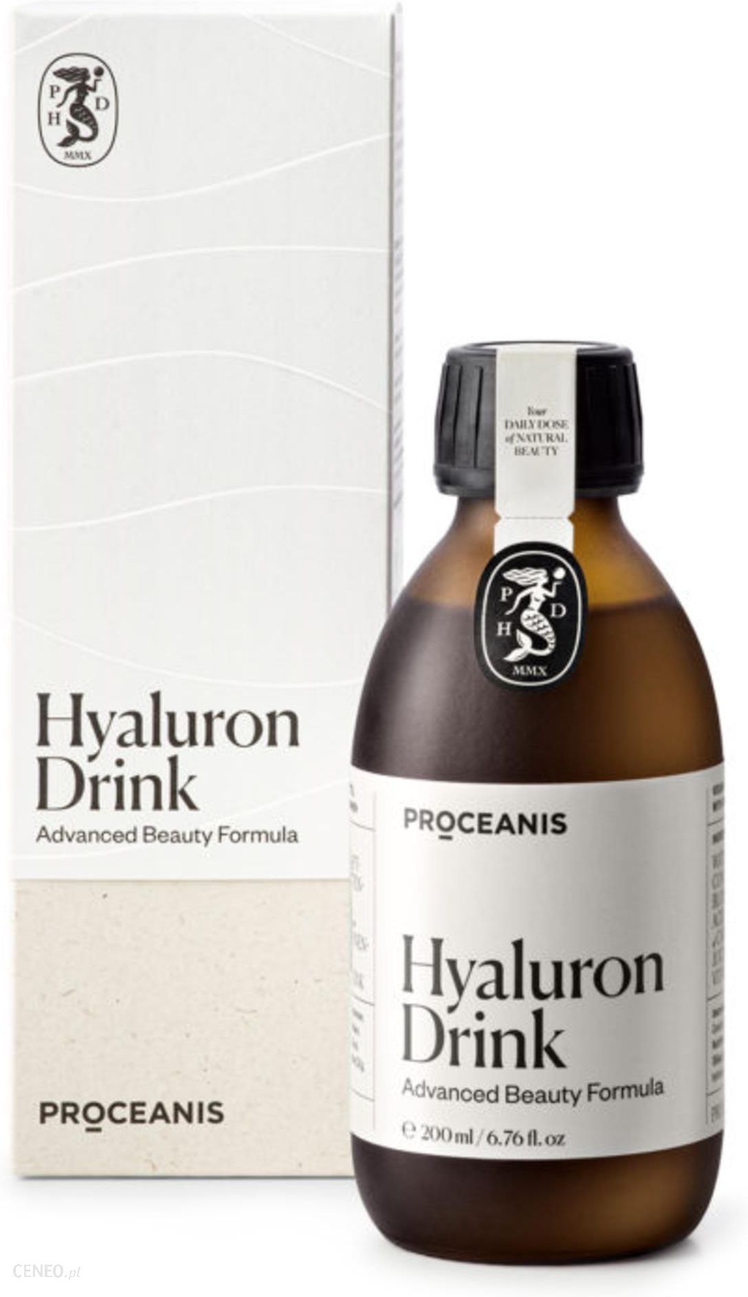 Twoja dzienna dawka naturalnego piękna! kwas hialuronowy o głębokim działaniu w postaci Beauty Drinka do stosowania od wewnątrz. Proceanis Hyaluron Drink łączy w sobie sprawdzony kompleks wegańskiego kwasu hialuronowego z synergiczną kombinacją składników odżywczych i owocowym wyciągiem z granatów. Pozyskiwany w procesie biofermentacji roślinnej, dzięki innowacyjnej strukturze molekularnej, unikalnemu połączeniu cząsteczek krótko- i długołańcuchowych idealnie nadaje się do naturalnego wchłaniania przez żywność. Do stosowania codziennego ( polecany na czczo ) aby utrzymać nawilżoną, odżywioną i młodszą skórę oraz zdrowe włosy i paznokcie jak i chronić skórę przed stresem oksydacyjnym. Hyaluron Drink ma działanie antyoksydacyjne, regeneracyjne, odmładzające na skórę, wspiera stawy i uzupełnia braki kwasu hialuronowego w organizmie.Efekty widoczne już po kilku tygodniach stosowania. Produkt w 100% naturalny i wegański. Nie zawiera konserwantów, nie wywołuje alergii, jest odpowiedni dla kobiet w ciąży i karmiących oraz diabetykówTo jedyny produkt na rynku z nisko i wysokocząsteczkowym kwasem hialuronowym – efekty i działanie oparte na badaniach klinicznych.