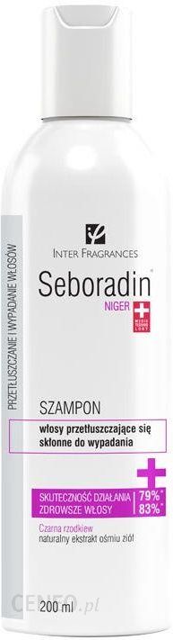 Seboradin Niger Szampon z czarną rzodkwią 200mlSeboradin Niger szampon do włosów przetłuszczających się powoduje zmniejszenie łojotoku, pobudza odrastanie włosów i wzmacnia cebulki włosa oraz zmniejsza ich wypadanie. Przywraca równowagę fizjologiczną skóry głowy, przyspiesza gojenie podrażnionej skóry głowy oraz zwiększa jej odporność na grzybice i zakażenia bakteryjne, w tym hamuje rozwój grzyba, odpowiedzialnego za powstawanie łupieżu. Po zastosowaniu szamponu włosy są bardziej miękkie, sprężyste i dobrze się układają. Wspomagająco w walce z łojotokowym zapaleniem skóry głowy, łupieżem i łuszczycą.Wskazania: szampon przeznaczony do włosów skłonnych do przetłuszczania się, osłabione i wypadające. Do codziennego stosowania, dla kobiet i mężczyzn.Sposób użycia: niewielką ilość szamponu nanieść na wilgotne włosy, delikatnie rozprowadzić i wmasować w skórę głowy do wytworzenia się piany. Po minimum 2 minutach dokładnie spłukać wodą, czynność powtórzyć. Przed użyciem wstrząsnąć.Składniki aktywne: wyciąg z czarnej rzodkwi, olejek kolendrowy, olejek sosnowy, wyciąg z dziurawca, wyciąg z melisy, olejek z drzewa herbacianego, ekstrakt z szałwii, ekstrakt z rumianku, ekstrakt z pokrzywy, ekstrakt z rozmarynu, ekstrakt z kasztanowca, ekstrakt z liści brzozy, ekstrakt z podbiału, wyciąg ze skrzypu polnego, tymol, D-limonen, D-pantenol.Skuteczność kuracji potwierdzona badaniami pod kontrolą dermatologiczną.