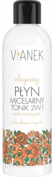 Tonik i Płyn Micelarny 2 w 1 Odżywczy 200 ml Vianek PomarańczowyDelikatny preparat łączy w sobie funkcje płynu micelarnego, skutecznie usuwającego makijaż oraz toniku o działaniu nawilżającym o kojącym. Przeznaczony do każdego rodzaju skóry. Dzięki zawartości oleju rokitnikowego, oleju z pestek moreli i lecytyny sojowej, odżywia i pozostawia ochronną warstwę, która zapobiega przesuszeniu skóry. Ekstrakt z nagietka i panthenol łagodzą podrażnienia i przywracają komfort skórze po demakijażu.Skład produktu:Aqua, Decyl Glucoside, Glycerin, Calendula Officinalis Flower Extract, Propanediol, Panthenol, Prunis Armeniaca Kernel Oil, Hippophae Rhamnoides Oil, Lecithin, Citric Acid, Phytic Acid, Cocamidopropyl Betaine, Benzyl Alcohol, Parfum, Dehydroacetic Acid, Benzyl Salicylate, Hexyl Cinnamal, Lilial, Coumarin.Sposób użycia:Nanieś płyn na płatek kosmetyczny i delikatnie przetrzyj skórę twarzy, szyi i dekoltu. Aby usunąć makijaż oczu, na zamkniętej powiece przytrzymaj nasączony płatek i ściągnij w kierunku rzęs.Kraj producenta: PolskaProdukty VIANEK serii pomarańczowej charakteryzują się silnym działaniem odżywczym. Przeznaczone są do pielęgnacji ciała, do każdego rodzaju skóry.Produkty serii odżywczej zawierają takie składniki aktywne, jak:ekstrakt z korzenia cykorii bogaty w inulinę (naturalny prebiotyk) oraz witaminy, nawilża i działa łagodzącoekstrakt z miodunki to bogactwo witamin i składników odżywczych ekstrakt z ziela pięciornika gęsiego działa łagodząco i ochronnieekstrakt z kwiatów nagietka lekarskiego bogaty w karotenoidy, flawonoidy i związki śluzowe, posiada właściwości wzmacniające i ochronneekstrakt z nasion lnu zwyczajnego dzięki związkom śluzowym działa ochronnie i silnie nawilżającoolej z pestek moreli bogaty w witaminy m.in. A i E, silnie nawilża, odżywia skóręolej rokitnikowy dzięki wysokiej zawartości karotenoidów oraz witaminy E wykazuje silne działanie odżywcze i rewitalizującelecytyna sojowa to źródło fosfolipidów, chroniące przed przeznaskórkową utratą wody, pomaga wnikać składnikom aktywnym głębiej do skórywosk pszczeli odpowiedzialny za wygładzenie, lekkie natłuszczenie i nawilżenie skóry, stanowi doskonałą barierę ochronną zapobiegającą jej wysuszaniumasło kakaowe bardzo dobrze przyswajane przez skórę, wykazuje działanie natłuszczające, nawilżające oraz ochraniające masło avocado silnie nawilża i uelastycznia skórę, przyspiesza regenerację, łagodzi podrażnienia wywołane czynnikami środowiskowymimiód wykazuje silne działanie odżywcze i nawilżające na skórę i włosypanthenol silnie wiąże wodę w skórze, w skórze z prowitaminy przekształca się w witaminę B5, chroni skórę przed podrażnieniamiwitamina E to naturalny konserwant, zapobiega utlenianiu się fazy olejowej kosmetyku, ponadto jest antyoksydantem, dzięki temu chroni przed zniszczeniem lipidy naskórka