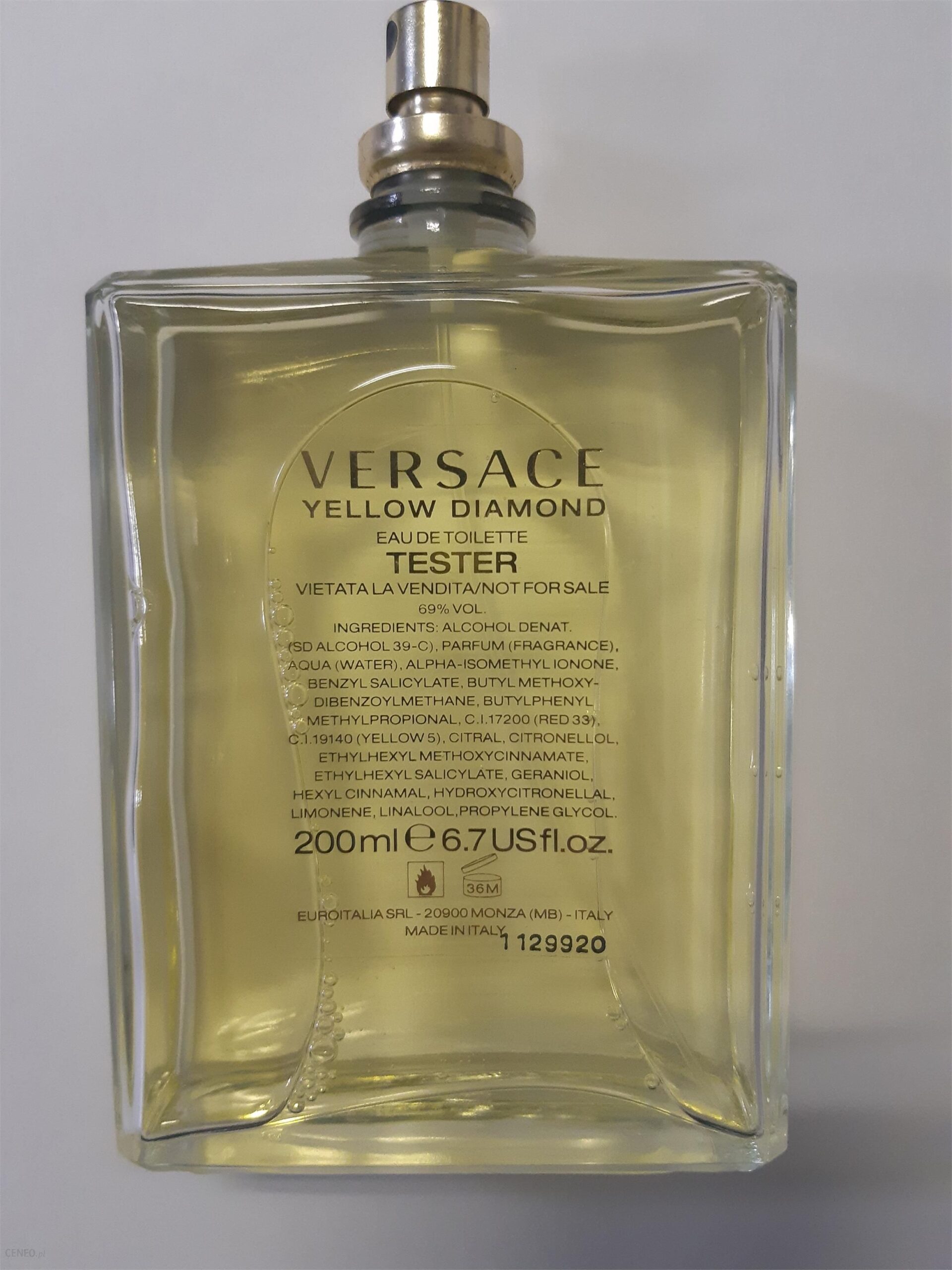 Premiera: 2011 rokYellow Diamond marki Versace to kwiatowe perfumy dla kobiet. Yellow Diamond został wydany w 2011 rokNuty zapachowe:nuta głowy: Cytryna Amalfi, Gruszka, Bergamotka i Neroli;nuta serca: Mimoza, Frezja, Lilia wodna i Kwiat afrykańskiej pomarańczy;nuta bazy: Piżmo, Drzewo gwajakowe i Bursztyn.