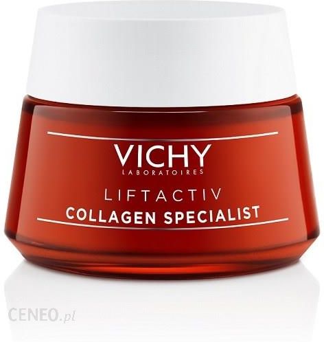Vichy Liftactiv Collagen Specialist Krem na dzień 50 MLZainspirowany nową generacją nieinwazyjnych zabiegów medycyny estetycznej, Liftactiv Collagen Specialist koryguje oznaki starzenia się skóry spowodowane utratą kolagenu. Liftactiv Collagen Specialist zawierający m.in. połączenie dwóch wyselekcjonowanych przeciwzmarszczkowych Peptydów, wyrównującej koloryt skóry pochodnej witaminy C oraz Wody Termalnej z VICHY. Krem sprawia, że skóra jest bardziej jędrna i wygładzona. Posiada potwierdzoną skuteczność. Już po 4 godzinach poprawia jędrność skóry (+20%)¹. Po 4 tygodniach stosowania redukuje efekt kurzych łapek (-16%)², a po 8 tygodniach regularnego stosowania redukuje wiotczenie skóry³.¹Test instrumentalny na grupie 40 kobiet. ²Ocena kliniczna zmarszczek na grupie 58 kobiet. ³Ocena kliniczna, 52 kobietySkładniki (INCI)Aqua / Water, Glycerin (gliceryna), Dimethicon, Isohexadecane, Alcohol Denat, Silica, Hydroxyethylpiperazine Ethane Sulfonic Acid, Propanediol, Synthetic Wax, Peg-10 Dimethicone, Eperua Falcata Bark Extract (ekstrakt z Eperua Falcata), Peg-30 Dipolyhydroxystearate, Stearyl Alcohol, Sorbitan Oleate, Dimethicone/peg-10/15 Crosspolymer, Dimethicone/polyglycerin-3 Crosspolymer, Ceteareth-6, Sodium Acrylates Copolymer, Sodium Citrate, Sodium Hydroxide, Sodium Phytate, Cyclodextrin, Adenosine, Ascorbyl Glucoside, Nylon-12, Isopropyl Alcohol, Propylene Carbonate, Dipropylene Glycol, Caprylic/capric Triglyceride, Caprylyl Glycol, Acetyl Tetrapeptide-9, Synthetic Fluorphlogopite, Disteardimonium Hectorite, Dextrin, Pisum Sativum Extract / Pea Extract (ekstrakt z nasion zielonego groszku), Tocopherol (witamina E), Phenoxyethanol, Ci 15985 / Yellow 6, Ci 77891 / Titanium Dioxide, Parfum / Fragrance.Jak używaćNiewielką ilość kremu należy nanieść na oczyszczoną i suchą skórę. Rozprowadzić równomiernie, wykonując delikatny masaż twarzy.Produkt przeznaczony jest do codziennego stosowania – jako element porannej pielęgnacji. W razie potrzeby krem można stosować także wieczorem.Typ skóry:Do każdego typu cery.