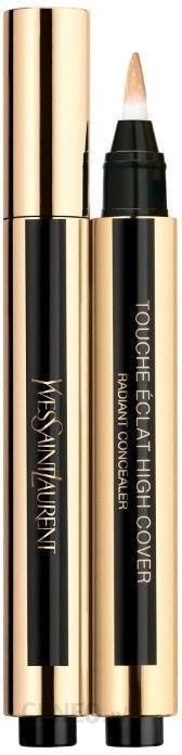 Nowy korektor rozswietlajacy w pedzelku jest jeszcze lepszy. Touche Éclat High Cover zapewnia jeszcze silniejszy efekt kryjacy. Natychmiast ujednolica nierównomierny koloryt skóry. Doskonale kryje, niwelujac oznaki zmeczenia, w tym cienie pod oczami oraz rozszerzone pory i blizny. Dodatkowo, rozswietla cere, dodajac jej swiezego wygladu. W jego skladzie znajduja sie naturalne wypelniacze „soft focus”, a takze zapobiegajaca starzeniu sie witamina E. Zawartosc kofeiny poprawia mikrokrazenie i pomaga zredukowac opuchlizne, a ekstrakt z nagietka marokanskiego dziala kojaco. Korektor ma postac pisaka. Juz po jednym kliknieciu, uwalniana jest odrobina rozswietlacza, która za sprawa plynnej konsystencji swietnie sie rozprowadza. Mozna ja aplikowac pedzelkiem lub palcami i stosowac równiez na powieki. Jest dostepny w 6 odcieniach, by idealnie wspólgral z Twoja karnacja, kazdego dnia dodajac jej blasku.